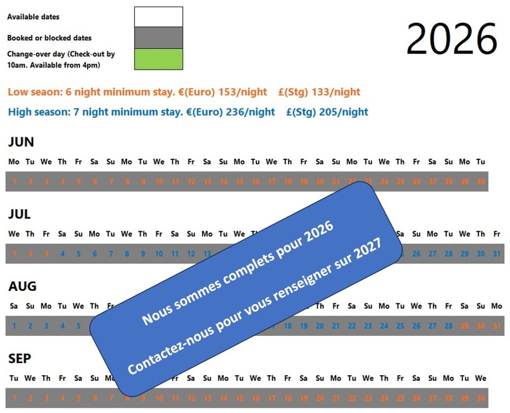 S’il vous plaît contactez-nous pour toute question ou pour faire une réservation. Nous vous demandons de vous enregistrer le jour d’arrivée après 16h et de partir le jour du départ avant 10h.